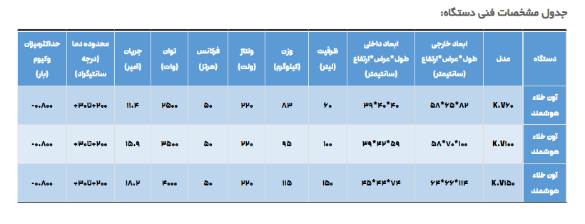 - دارای ترموستات مکانیکی دما جهت جلوگیری از نوسانات دمایی و ایمنی بیشتر